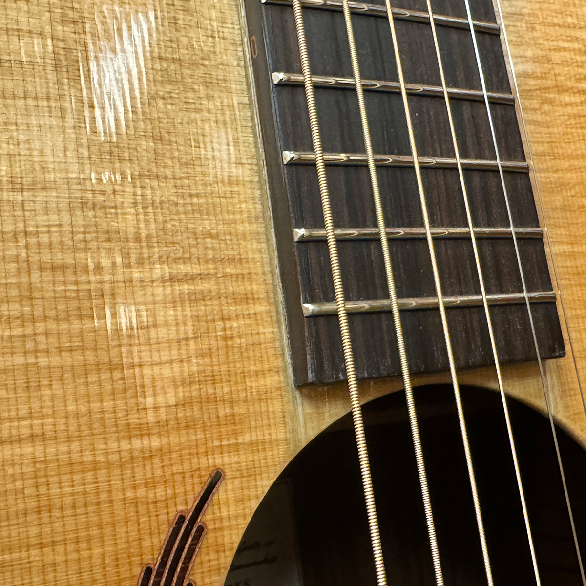 使用中に指板脇のスプルースにクラックが入ったため、製作者本人によって修正していただきました。