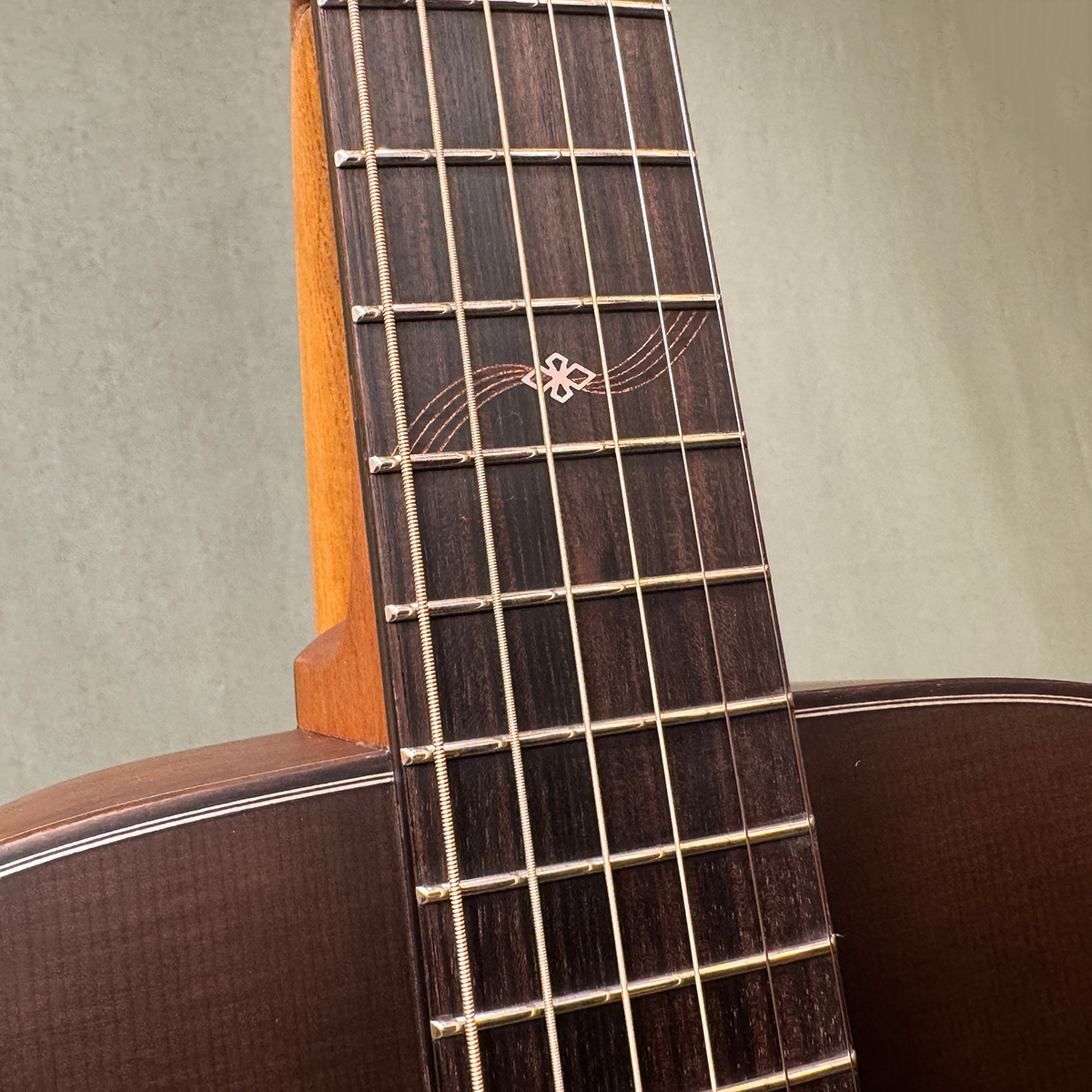 ・木材選定のセンスが若手離れ → 目の詰んだスプルース、素直に鳴るマホガニー、反応の速いローズウッドなど、楽器としてのポテンシャルを最優先した選択。