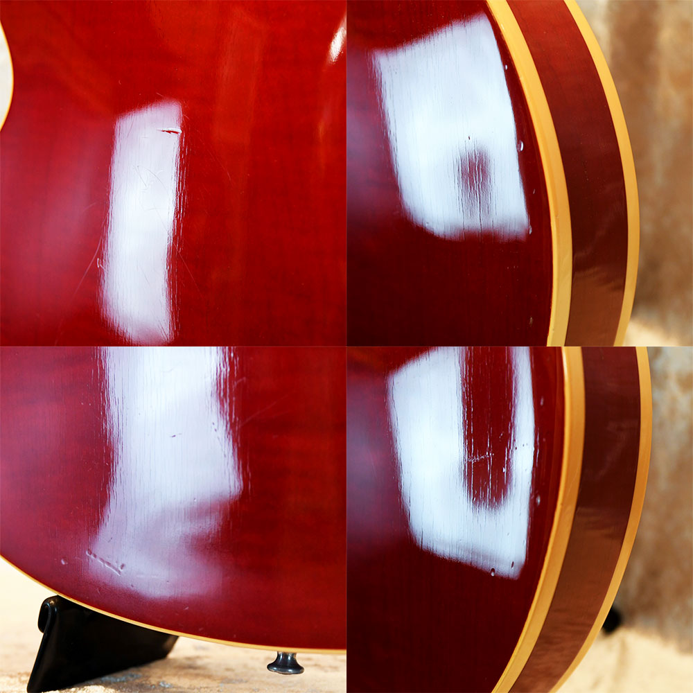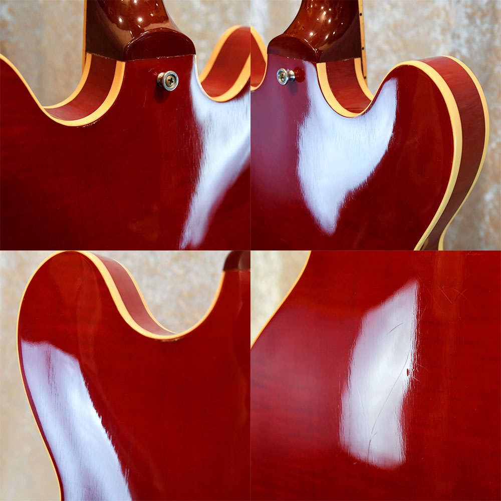 【状態】擦り傷や打痕等が多数あります。ネックに反りはなく、トラスロッドも余裕があります。フレットの残りは7割程度です。※ピックガードブラケット・ペグ交換BKハードケース付属