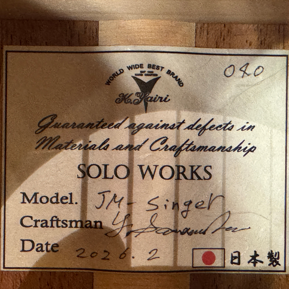 ヤイリギターの中でも、職人が個人作業で仕立てる特別ライン「Solo Works」。