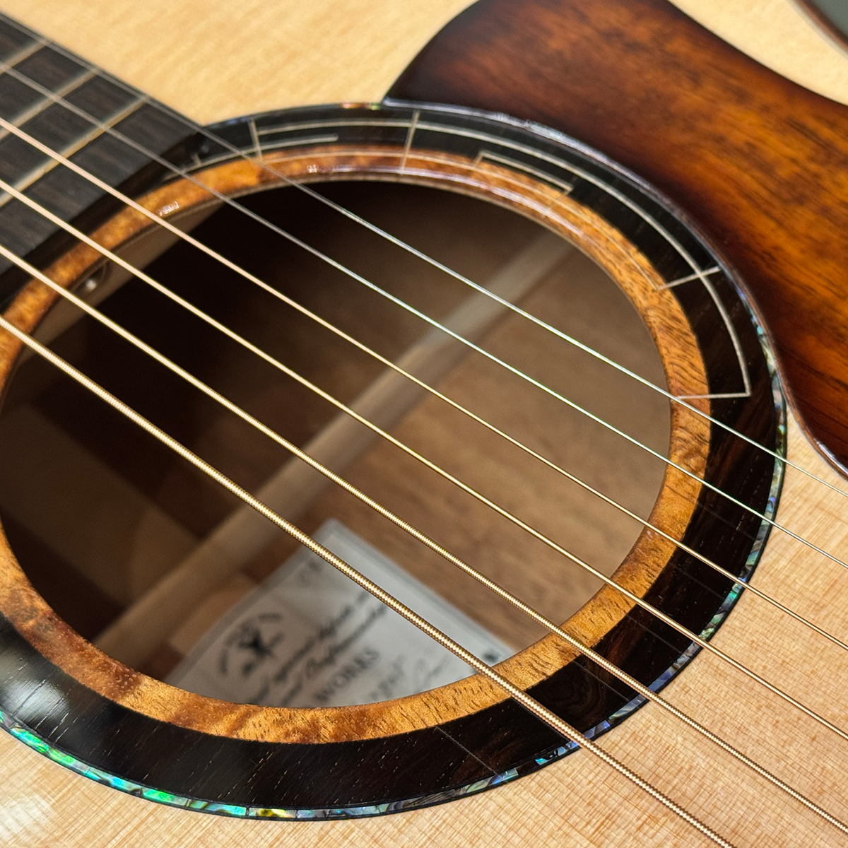 強いピッキングでも暴れず、弱いフィンガータッチでもしっかり反応するよう、表板厚・力木配置まで細かく調整しています。