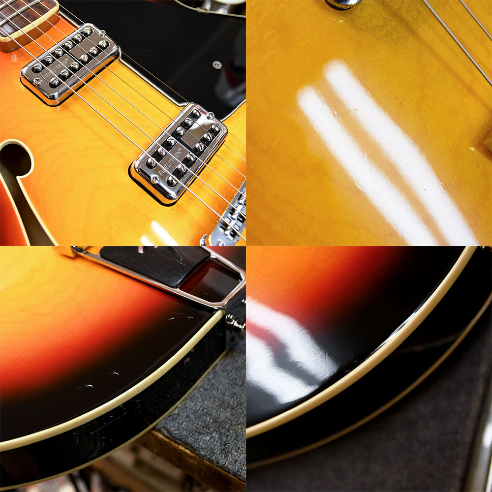 【状態】擦り傷や打痕等があります。ネックに反りはなく、トラスロッドも余裕があります。フレットの残りは7割程度です。ソフトケース付属