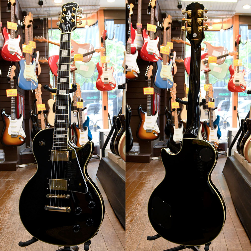 ギブソン社のコストパフォーマンスブランド「エピフォン」のレスポール・カスタムです。コントロールノブのPUSH/PULLでコイルタップが可能です。