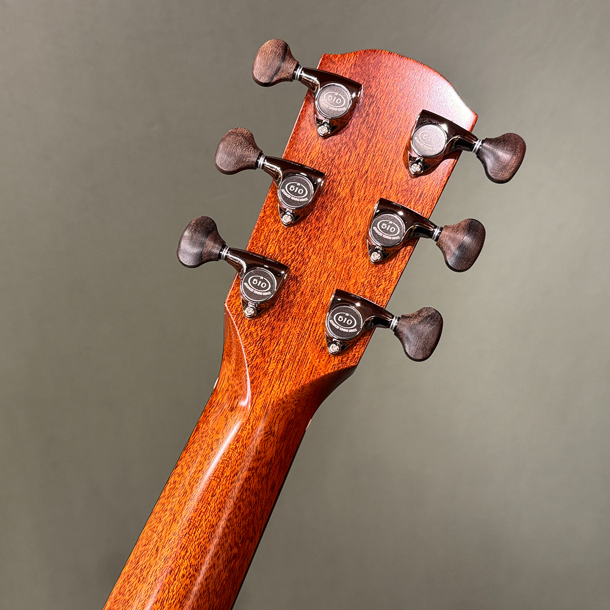 ヘッド上部にマホガニー材で矢じりのみをインレイした特別仕様。