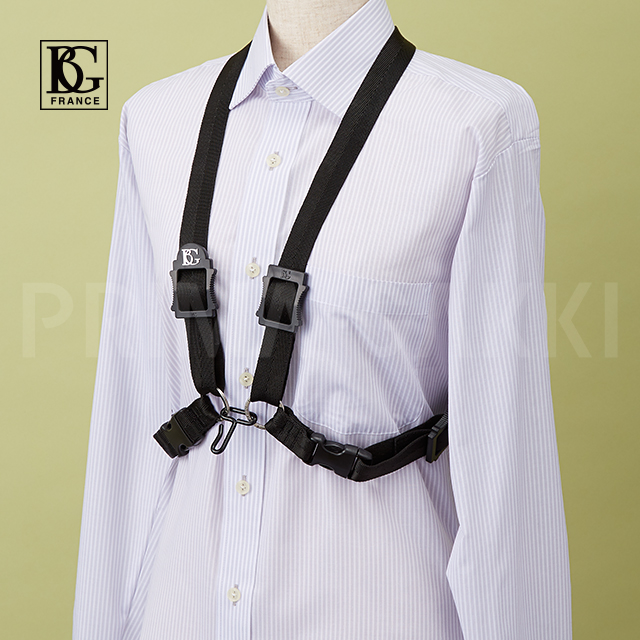 首の負担を大幅に軽減させるハーネスタイプ。 フックは、メタルフック・スナップフック・メタルスナップフックの三種類があります。 こちらのフックは、メタルフックです。