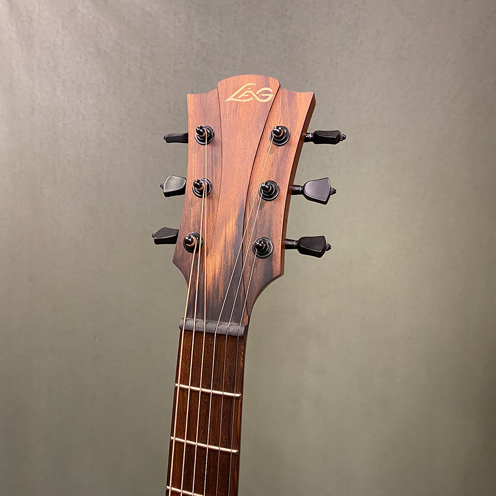 フランス発祥のビギナー向けブランド、LAG(ラグ)の杉トップ単板仕様のエレアコです。ヤマハなどのトラディッショナルデザインに比べて、斬新でオリジナリティーの高いルックスが人気の火種になり、現在ではネット販売を含めて全国的に取り扱う店舗が増えたせいもあり、各機種の在庫が少なく、希少モデル扱いとなっております。オーディトリウム系統のボディーサイズながら良質な杉単板から生まれる温かみのあるサウンドに加えて、ボディーエッヂを研磨することによって抱えた腕へのプレッシャーを軽減するなど、弾き心地の面でも人気を集めています。