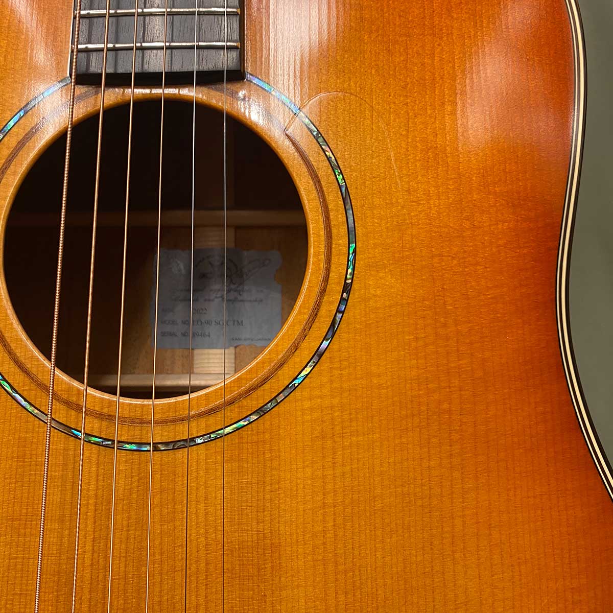 小型ドレッドノートとして人気のLOサイズ。くびれの深いRFよりも音量があり、繊細でありながら低音に深みのある独特なサウンドです。木材を磨き上げた時に出る自然な艶感を演出するべく、グロスフィニッシュとサテンフィニッシュの中間、セミグロスで仕上げて頂きました。